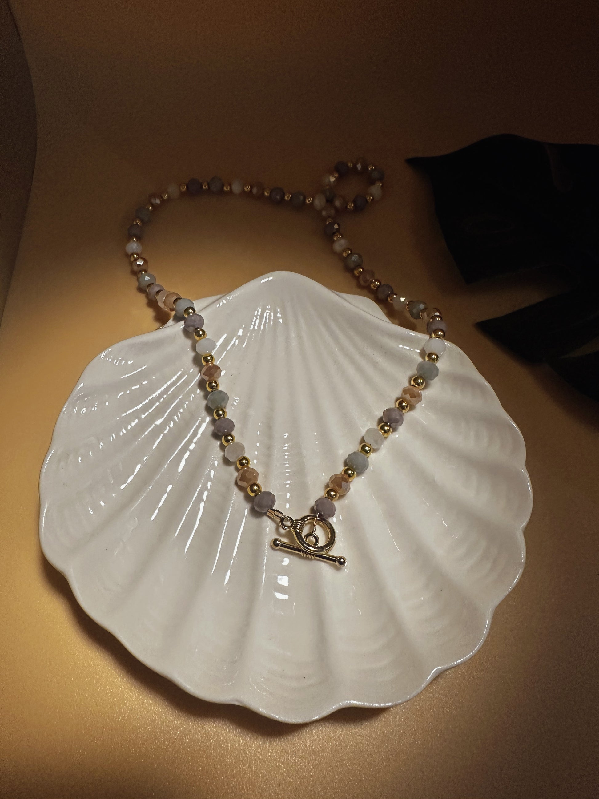 The Boho Gleam Necklace brings a burst of color and shine with its mix of vibrant beads and gleaming gold accents. Finished with a stylish gold toggle clasp, this playful piece adds a cheerful touch to any outfit, making it your go-to accessory for effortless fun and flair.