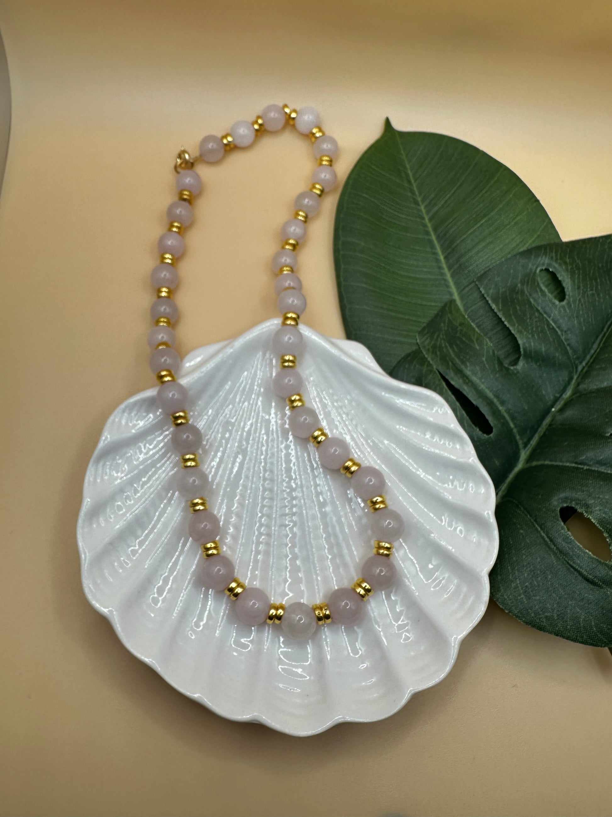The Cherry Blossoms Necklace features a delicate light link chain accented with sparkling gold beads, creating a playful and charming accessory that adds a touch of sunshine to any outfit. Perfect for those who love subtle shimmer with a fun twist.