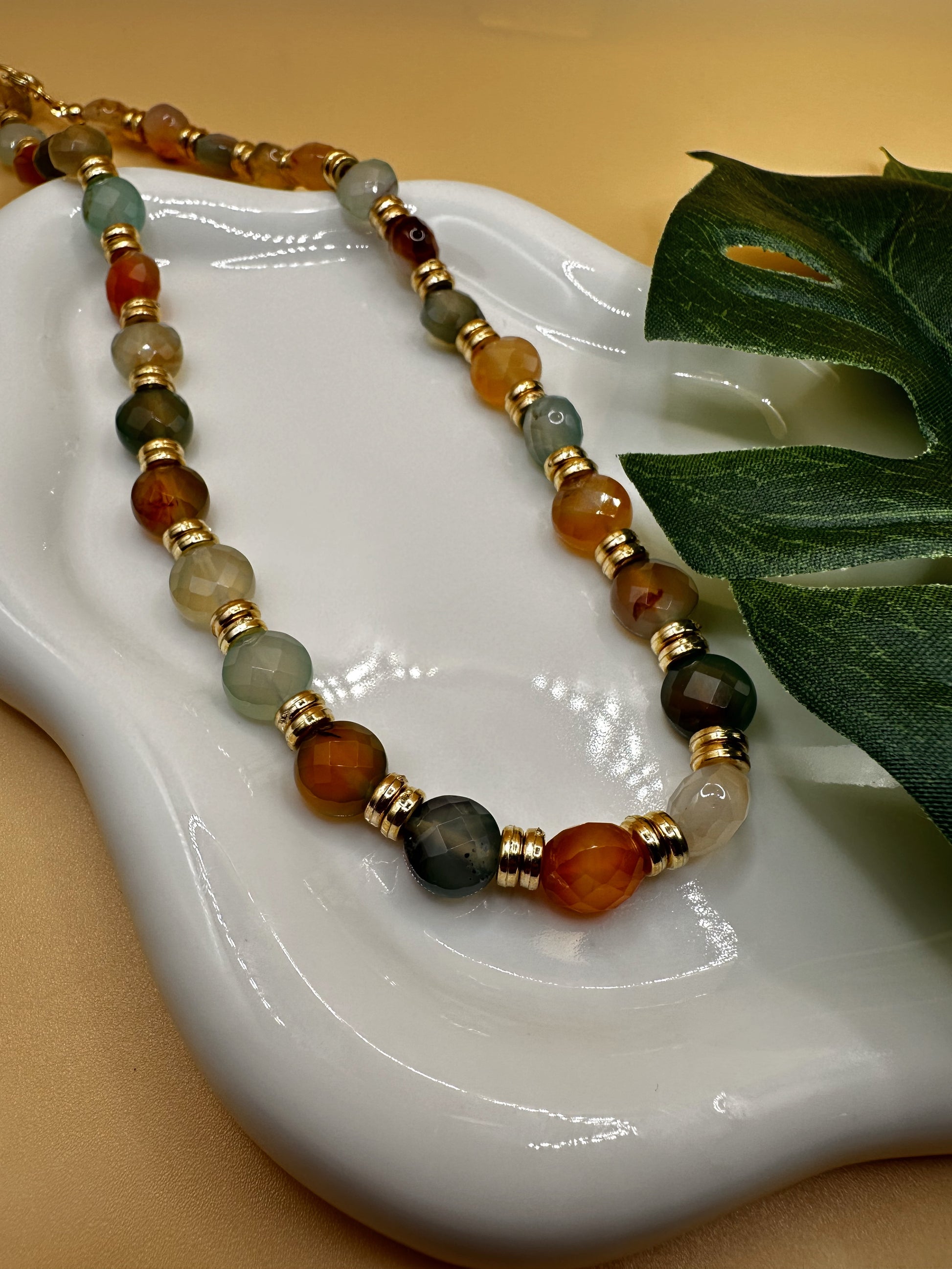 A beautifully crafted necklace featuring a harmonious mix of earthy-toned beads, accented with subtle touches of gold for a hint of elegance. This versatile piece brings natural warmth and to any look.