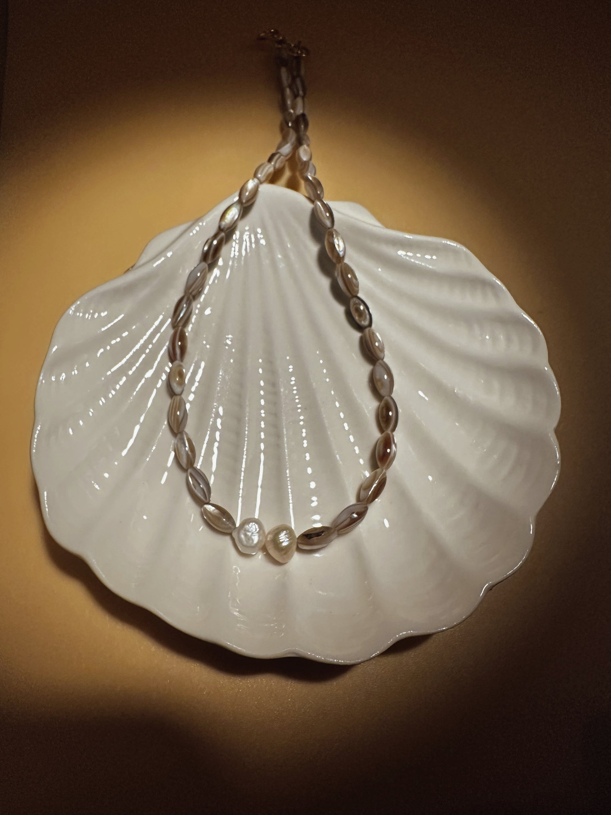 A sun kissed sparkle to your look with the Sand Swept Glow Necklace. Featuring warm-toned beads that catch the light beautifully, this playful piece is centered with two lustrous freshwater pearls for a touch of ocean-inspired charm. Perfect for adding a breezy, effortless glow to any outfit.